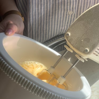 Take 1⁄3 of the yolk mixture, add to the white mixture & whisk until fully incorporated. Repeat with ½ the remaining yolk mixture.