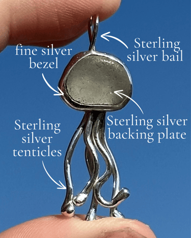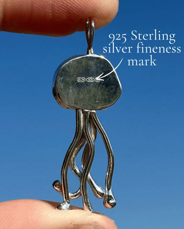 This Jimmy the Jellyfish has a 925 Sterling silver fineness stamp, even though the bezel is made using 999 fine silver.